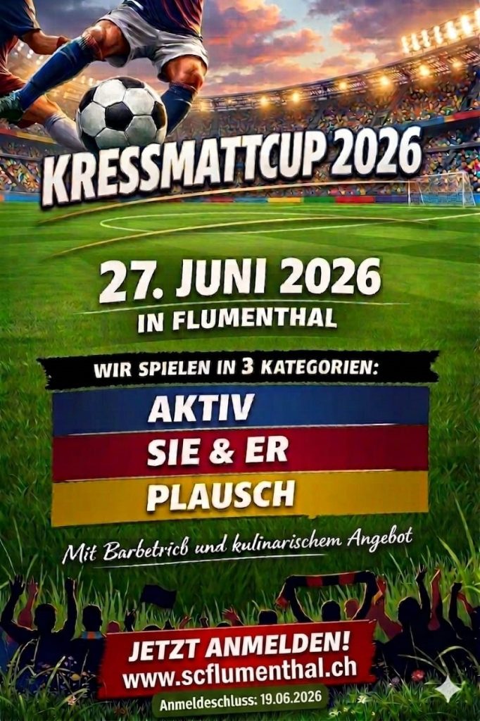 Der Anmeldeschluss ist der 19.06.2026. Bei Fragen könnt ihr euch gerne per E-Mail an kressmattcupflumenthal@gmail.com wenden.